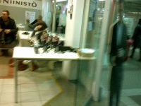 ![]() "Pahvimies kummastuttaa pientä kulkijaa". Keski-Suomi. Jyväskylä. Keskusta. Torikeskus. Cafe Niinistö. Tiistai 2012-01-03 klo 12:00. Mobikuvat: Pertti Manninen. ![]() |